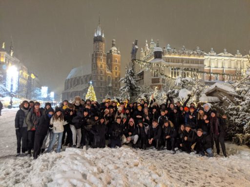 With 76 pupils on an overseas trip, our visit to Poland was always going to be epic and it started with an epic delay at Stansted Airport! Despite the extra 12 hours that we had to inspect the departure lounge, not one of the participants whinged or moaned, we remained upbeat and hopeful we would arrive in Kraków before the end of the day. Once we arrived, the difficulties of the previous day melted away as we were met with a picture-perfect scene that looked like it was straight from a Christmas card.